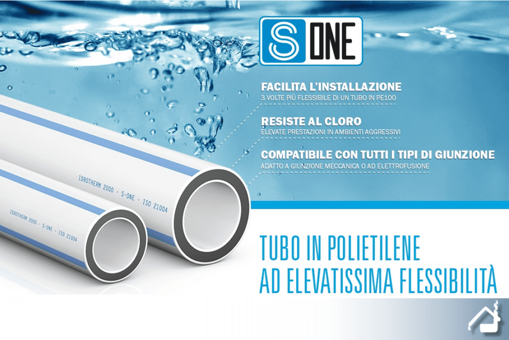 S-ONE di Idrotherm 2000 è il tubo in polietilene ad elevatissima flessibilità con struttura multistrato, per la distribuzione di acqua per uso umano, da utilizzare nelle derivazioni di utenza delle reti di approvvigionamento idrico. È realizzato con materiali termoplastici altamente performati e dotato di una straordinaria flessibilità che lo rende facilmente utilizzabile in spazi poco ampi e con il mimino impiego di raccordi e curve.